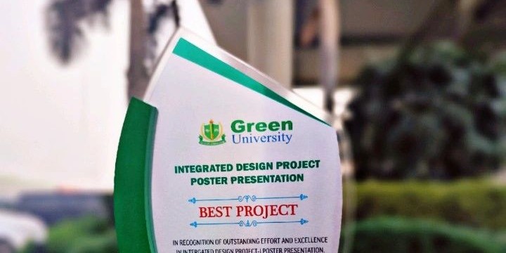 Achieved the Best Project Award in the Integrated Design Project (IDP) of Spring 2024 at Green University of Bangladesh.